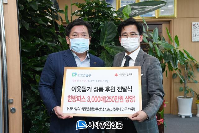 [½Ã»çÁ¾ÇսŹ® = ¿À½ÂÅà ±âÀÚ] (»ç)»ç¶ûÀÇÈñ¸ÁÀºÇà ±¤ÁÖÀü³²º»ºÎ(ȸÀå ¾ç¿ëÇö)´Â Áö³ 27ÀÏ ¾î¸£½ÅµéÀ» À§ÇØ ÇѹæÆÄ½º 3,000¸Å¸¦ ±¤ÁÖ³²±¸(³²±¸Ã»Àå ±èº´³»)¿¡ Àü´ÞÇÏ¿´´Ù.