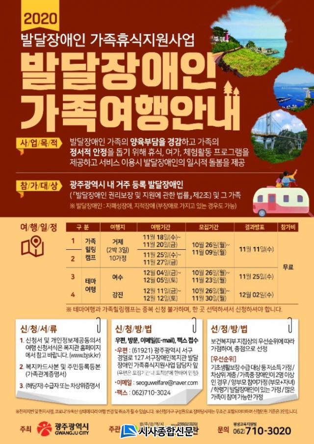 º» »ç¾÷Àº ¹ß´ÞÀå¾ÖÀÎ °¡Á·¿¡°Ô ÈÞ½ÄÀ» Á¦°øÇÏ¿© ¾çÀ°ºÎ´ãÀ» °æ°¨Çϰí Á¤¼Àû ¾ÈÁ¤À» µ½±â À§ÇÑ »ç¾÷À¸·Î °¡Á·Èú¸µÄ·ÇÁ¿Í Å׸¶¿©ÇàÀ¸·Î ³ª´µ¾î ÁøÇàµÇ¸ç °¡Á·Èú¸µÄ·ÇÁ´Â °ÅÁ¦¸¦ ¹è°æÀ¸·Î °ü±¤¸í¼Ò °ü¶÷ ¹× üÇè Ȱµ¿À» ÁøÇàÇÏ°í ¹ß´ÞÀå¾ÖÀΰú °¡Á·µé °³º° ÇÁ·Î±×·¥À» Á¦°øÇÔÀ¸·Î½á °¡Á· Èú¸µ ¿©ÇàÀ» Áö¿øÇϰí 1Â÷(11/18~11/20)¿Í 2Â÷(11/25~11/27)·Î µÎ Â÷·Ê ÁøÇàµÇ¸ç °¢°¢ 10°¡Á¤¾¿ Âü¿©ÇÏ¿© ÁøÇàµÈ´Ù.