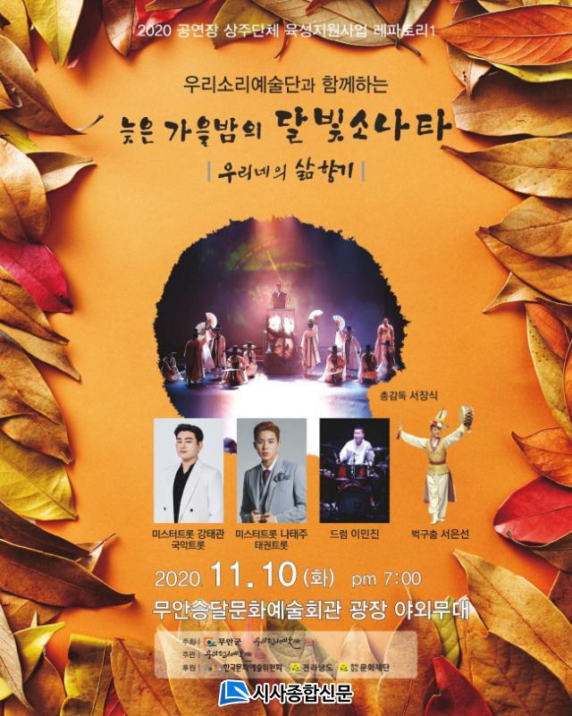 [½Ã»çÁ¾ÇսŹ® = ¿À½ÂÅà ±âÀÚ] ¹«¾È±º(±º¼ö ±è»ê)Àº ¿ì¸®¼Ò¸®¿¹¼ú´Ü(´ëÇ¥ Ãֹ̼÷)ÀÇ ·¹ÆÄÅ丮 °ø¿¬ ¡¸´ÊÀº °¡À»¹ãÀÇ ´Þºû ¼Ò³ªÅ¸¡¹¸¦ ¿À´Â 11¿ù 10ÀÏ ¿ÀÈÄ 7½Ã¿¡ ½Â´Þ¹®È¿¹¼úȸ°ü ¾ß¿Ü Ư¼³¹«´ë¿¡¼ °³ÃÖÇÑ´Ù°í ¹àÇû´Ù.