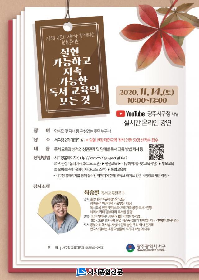 ÀÚ¼¼ÇÑ »çÇ×Àº ¼±¸Ã» ȨÆäÀÌÁö(http://seogu.gwangju.kr/)¢¡Æò»ý±³À°¢¡¼±¸ÇÏÀÌ¿¡µà³Ý(±³À°Áö¿ø)¢¡ºÎ¸ð±³À°¿¡¼ È®ÀÎÇÒ ¼ö ÀÖÀ¸¸ç, ½Ç½Ã°£ ¿Â¶óÀÎ °¿¬ »çÀüÁ¢¼öµÈ Âü¿©ÀÚ´Â À¯Æ©ºê ½Ãû¸µÅ©¸¦ ¹®ÀÚ·Î Á¦°ø ¹ÞÀ» ¼ö ÀÖ´Ù.