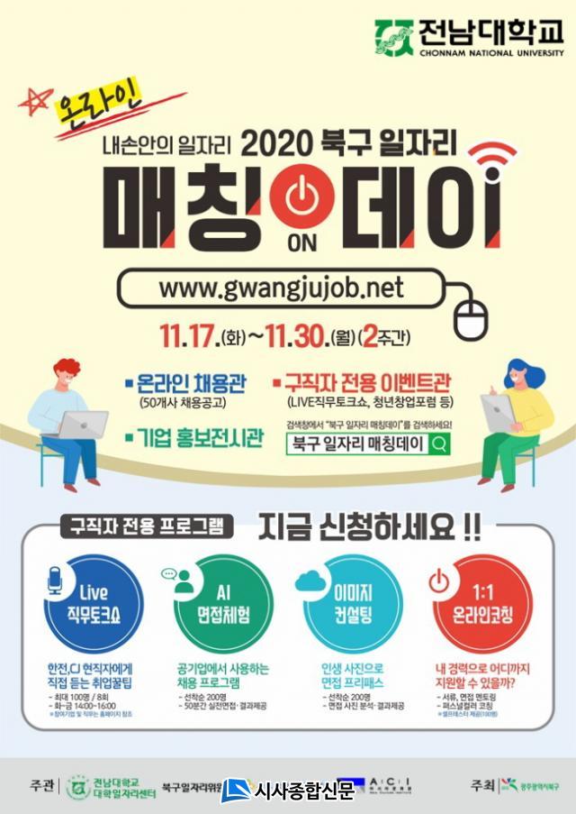 Àü³²´ë ´ëÇÐÀÏÀÚ¸®¼¾ÅÍ(¼¾ÅÍÀå ÀÌÀç¿ ±³¼ö)´Â ±¤Áֽà ºÏ±¸Ã» ¹× ±¤ÁÖ°í¿ëº¹Áö¼¾ÅÍ µî°ú ±¤ÁÖÁö¿ª û³âÃþ ¹× ÀçÇлýÀ» ´ë»óÀ¸·Î ¿À´Â 11¿ù 17ÀϺÎÅÍ 30ÀϱîÁö ¿Â¶óÀÎ Ç÷§ÆûÀ» Ȱ¿ëÇØ Ãë¾÷¹Ú¶÷ȸ ¡®2020³â ºÏ±¸ ÀÏÀÚ¸®¸ÅĪ[ON]µ¥ÀÌ¡¯¸¦ ÁøÇàÇÑ´Ù.