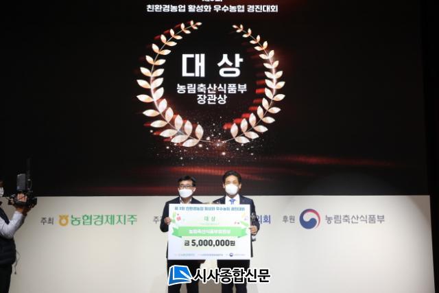 [½Ã»çÁ¾ÇսŹ® = ³²Àç¿Á ±âÀÚ] °í»ê³óÇùÀº Áö³ 11¿ù 20ÀÏ Á¤ºÎ¼¼Á¾ÄÁº¥¼Ç¼¾ÅÍ¿¡¼ ÁøÇàµÈ ģȯ°æ³ó¾÷ Ȱ¼ºÈ ¿ì¼ö³óÇù °æÁø´ëȸ¿¡¼ ´ë»ó(³ó¸²Ãà»ê½ÄǰºÎÀå°ü»ó)À» ¼ö»óÇÏ¿´´Ù.