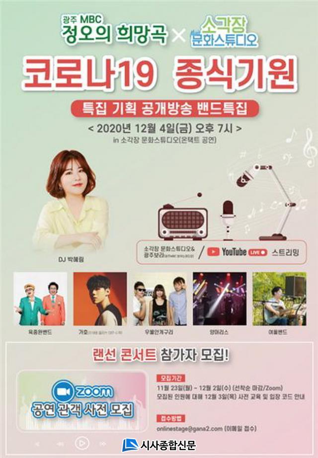 °ø¿¬Àº À¯Æ©ºê °ø½Ä ä³ÎÀÎ ¡®¼Ò°¢À幮ȽºÆ©µð¿À¡¯¿Í ¡®±¤ÁÖº¸¶ó(±¤ÁÖMBCº¸ÀÌ´Â ¶óµð¿À)¡¯ ä³ÎÀ» ÅëÇØ ½Ç½Ã°£ ½ºÆ®¸®¹Ö µÇ¸ç ³ìÈµÈ À½¿øÀº ±¤ÁÖMBC ¡®Á¤¿ÀÀÇ Èñ¸Á°î¡¯ ½Ã°£¿¡ Áö»óÆÄ ¶óµð¿À¸¦ ÅëÇØ ¹æ¼ÛµÈ´Ù.