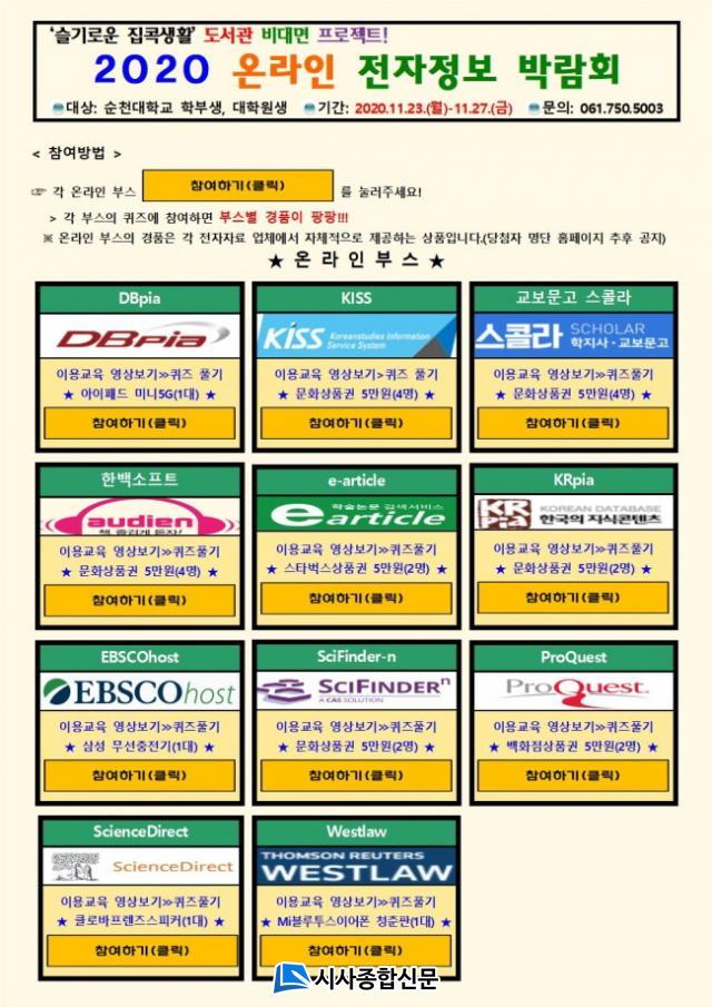 | ¼øÃµ´ëÇб³ µµ¼°ü, 2020 ¿Â¶óÀÎ ÀüÀÚÁ¤º¸ ¹Ú¶÷ȸ °³ÃÖ |