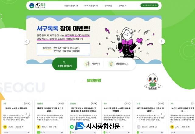 ÇöÀç Âü¿©À̺¥Æ®¸¦ ÁøÇàÁßÀ̸ç, ¿À´Â 12¿ù 31ÀϱîÁö ȨÆäÀÌÁö(https://www.seogu.gwangju.kr/seogutalktalk) ³»ÀÇ À̺¥Æ® °Ô½ÃÆÇÀ» ÅëÇØ ÁøÇàµÈ´Ù.