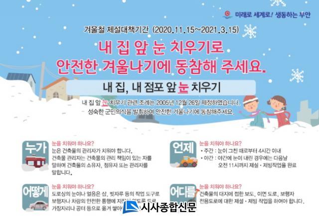 ºÎ¾È±ºÀº °Ü¿ïö ±º¹ÎÀÇ ¾ÈÀü»ç°í ¿¹¹æ°ú Àç»êÀ» º¸È£Çϰí, ±º¹Î ºÒÆíÀ» ÃÖ¼ÒÈ Çϱâ À§ÇØ ÁÖ¿ä °£¼±µµ·Î µî Â÷·® ÅëÇàÀÌ ¸¹Àº µµ·Î´Â ÇàÁ¤·ÂÀ» µ¿¿øÇØ ÁýÁß Á¦¼³ ÀÛ¾÷À» ¼öÇàÇÏÁö¸¸, ¸¶À» ¾È±æÀ̳ª Áý ¾Õ °ñ¸ñ±æ º¸µµ µîÀº ±º¹ÎÀÇ Àû±ØÀûÀÎ µ¿Âü¿¡ ÀÇÇÑ Çù·ÂÀÌ ÇÊ¿äÇÑ ½ÇÁ¤ÀÌ´Ù.