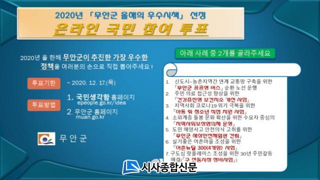 ÇÑÆí, ¿Â¶óÀÎ ÅõÇ¥´Â ±¹¹Î±ÇÀÍÀ§ ±¹¹Î»ý°¢ÇÔ(epeople.go.kr/idea) ¶Ç´Â ±º ȨÆäÀÌÁö(http://www.muan.go.kr)¿¡ Á¢¼ÓÇÏ¿© ÅõÇ¥ÇÏ¸é µÇ°í, ¹«¾È ±º¹Î »Ó ¾Æ´Ï¶ó ¹«¾È±ºÁ¤¿¡ °ü½ÉÀÌ ÀÖ´Â ±¹¹ÎÀ̶ó¸é ´©±¸³ª Âü¿©ÇÒ ¼ö ÀÖ´Ù.