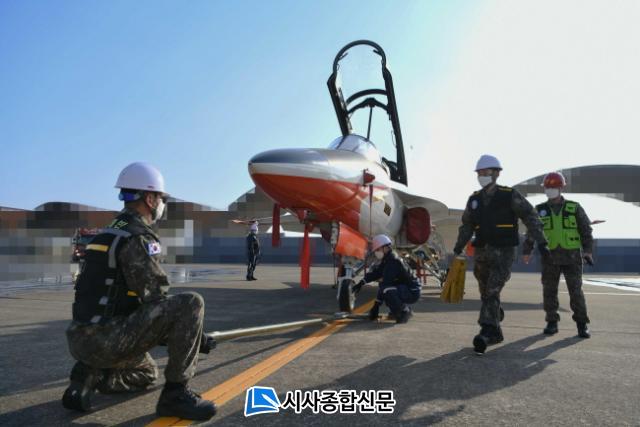 À̳¯ ÈÆ·ÃÀº T-50 Ç×°ø±â°¡ Âø·ú ½Ã ȰÁַθ¦ ÀÌÅ»ÇÏ¿© ÈÀç°¡ ¹ß»ýÇÑ »óȲÀ» °¡Á¤ÇÏ¿© ÀÌ·ç¾îÁ³´Ù. Ç×°ø±âÀÇ ºñ»ó»óȲÀ» Á¢¼öÇÑ °üÁ¦Å¾Àº ¼Ò¹æ ´ë±âÁ¶, Æø¹ß¹° ó¸®Á¶, ±¸±ÞÁ¶ µîÀ¸·Î ±¸¼ºµÈ Áö»ó±¸Á¶¹ÝÀ» ±ä±Þ Ã⵿½ÃÄ×´Ù.