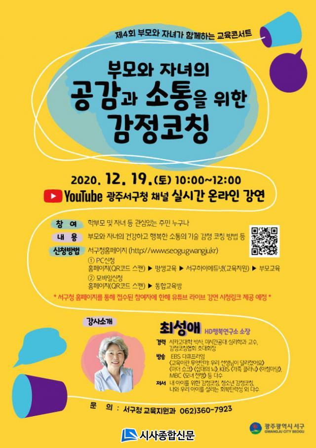 À̹ø ±³À°ÄܼƮ´Â ±¤ÁÖ¼±¸Ã» À¯Æ©ºê ä³ÎÀ» ÅëÇÑ ½Ç½Ã°£¿Â¶óÀÎ °¿¬À¸·Î HDÇູ¿¬±¸¼Ò ¼ÒÀå ÃÖ¼º¾Ö ¹Ú»ç¸¦ ÃÊÃ»ÇØ ¡®ºÎ¸ð¿Í ÀÚ³àÀÇ °ø°¨°ú ¼ÒÅëÀ» À§ÇÑ °¨Á¤ÄÚĪ¡¯À» ÁÖÁ¦·Î ÁøÇàµÈ´Ù.