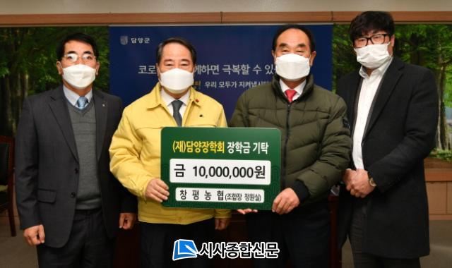 [½Ã»çÁ¾ÇսŹ® = ¿À½ÂÅà ±âÀÚ] (Àç)´ã¾çÀåÇÐȸ´Â Áö³ 17ÀÏ Ã¢Æò³ó¾÷Çùµ¿Á¶ÇÕ(Á¶ÇÕÀå Á¤¿ø½Ç)¿¡¼ Áö¿ª ÀÎÀçµéÀ» À§ÇØ ½á´Þ¶ó¸ç ÀåÇÐ±Ý 1,000¸¸¿øÀ» ±âŹÇß´Ù°í ÀüÇß´Ù.