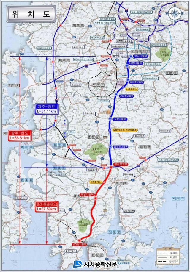 ±¤ÁÖ~¿Ïµµ °£ °í¼Óµµ·Î »ç¾÷Àº ÃÑ ¿¬Àå 88.61Km, 4Â÷¼± °í¼Óµµ·Î¸¦ °Ç¼³Çϱâ À§ÇØ ¾à 2Á¶ 6õ¾ï ¿øÀÌ ¼Ò¿äµÇ´Â ´ë±Ô¸ð ±¹Ã¥ »ç¾÷ÀÌ´Ù.
