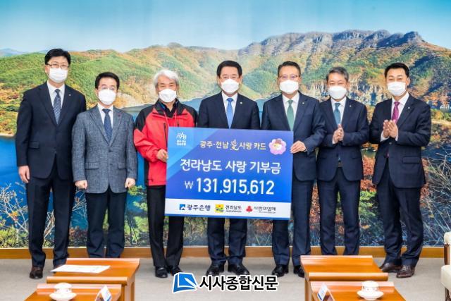 ¡®±¤ÁÖ¡¤Àü³²äñ»ç¶ûÄ«µå¡¯ÀÇ ¿Ã ÇÑÇØ ±âºÎ±Ý¾×Àº ÃÑ 296,019,687¿øÀÌ Àû¸³µÇ¾úÀ¸¸ç, ±¤ÁÖÀºÇàÀº Áö³ 21ÀÏ, ±¤ÁÖ±¤¿ª½Ã¿¡ 1¾ï6õ¿©¸¸¿øÀÇ ±âºÎ±ÝÀ» Àü´ÞÇѵ¥ À̾î À̹ø¿¡´Â 131,915,612¿øÀ» Àü³²Áö¿ª ³» »çȸº¹Áö»ç¾÷À» À§ÇØ Àü¶ó³²µµ¿¡ Àü´ÞÇß´Ù.