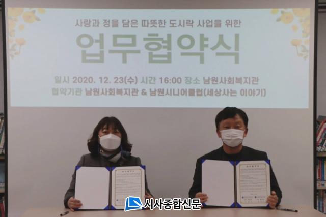 [½Ã»çÁ¾ÇսŹ® = ³²Àç¿Á ±âÀÚ] ³²¿ø½Ã Àç°¡³ëÀνĻç¹è´Þ »ç¾÷ ¼öÇà±â°üÀÎ ³²¿ø»çȸº¹Áö°ü°ú ³²¿ø½Ã´Ï¾îŬ·´ÀÌ 23ÀÏ ³²¿ø»çȸº¹Áö°ü¿¡¼ Àú¼Òµæ °Åµ¿ºÒÆí ¾î¸£½Å¿¡ ´ëÇÑ ½Ä»çÁ¦°øÀ» À§ÇÑ ¾÷¹« Çù¾àÀ» ü°áÇß´Ù.