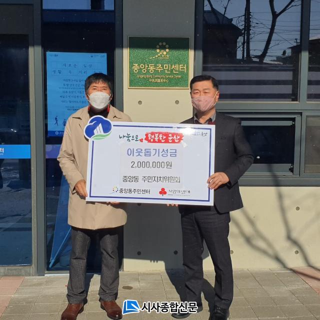 ±º»ê½Ã Áß¾Óµ¿Àº ÁÖ¹ÎÀÚÄ¡À§¿øÈ¸(À§¿øÀå ÀÌÁ¤¿À)°¡ ÀÌ¿ôµ½±â¼º±Ý 200¸¸¿øÀ» ±âŹÇß´Ù°í 5ÀÏ ¹àÇû´Ù. ¶Ç À̳¯ Áß¾Óµ¿ ÅëÀåÇùÀÇȸ(ȸÀå À¯¼øÀÚ)¿Í 50¸¸¿ø, Áß¾Óµ¿ »õ¸¶À»ºÎ³àȸ(ȸÀå ÇѰ©¼ø)µµ 30¸¸¿øÀ» ±âŹÇß´Ù.