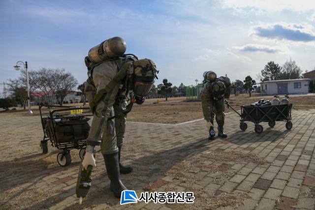 ÇöÀå¿¡ µµÂøÇÑ È»ý¹æ½Å¼Ó´ëÀÀÆÀÀº Ư¼öº¸È£ÀÇ¿Í ¾ç¾Ð½Ä °ø±âÈ£Èí±â¸¦ Áï½Ã Âø¿ëÇϰí ÇöÀå ÁÖº¯À¸·Î ¿À¿°ÅëÁ¦¼±À» ¼³Ä¡Çß´Ù. ÀÌ¾î¼ ÇöÀå¿¡ ÁøÀÔÇÏ¿© »ý¹°ÇÐ ¹«±â·Î ÀǽɵǴ ¹é»ö °¡·çÀÇ Ç¥º»À» äÃë, »ý¹°ÇÐ ¹«±â Áø´Ü ŰƮ¸¦ Ȱ¿ëÇØ ¹é»ö °¡·ç¿¡ ´ëÇÑ °£À̰˻縦 ½Ç½ÃÇß´Ù. È»ý¹æ ½Å¼Ó´ëÀÀÆÀÀº ¹é»ö °¡·ç°¡ À¯Çع°ÁúÀÏ °æ¿ì¸¦ ´ëºñÇÏ¿© ¹é»ö °¡·ç¸¦ ¸ðµÎ ¼ö°ÅÇϰí ÃÖÃÊ ¹ß°ßÁöÁ¡¿¡ ´ëÇÑ ¿øÁ¡°ú ÁÖº¯À» Á¦µ¶ÇÏ¿´°í, ¿ìü±¹ Á÷¿ø°ú ÁÖº¯ À庴µéÀ» ´ë»óÀ¸·Î ÀÎü Á¦µ¶À» ½Ç½ÃÇÏ¸é¼ ÈÆ·ÃÀ» Á¾·áÇÏ¿´´Ù.