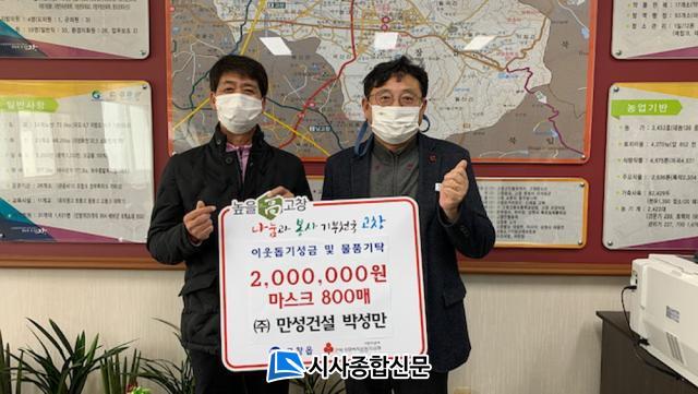 Áö³ 7ÀÏ °íⱺ ¢ß¸¸¼º°Ç¼³ ¹Ú¼º¸¸ ´ëÇ¥°¡ °íâÀ¾»ç¹«¼Ò¸¦ ã¾Æ ¼º±Ý 200¸¸¿ø°ú ÇÔ²² ¸¶½ºÅ© 800ÀåÀ» Àü´ÞÇϸç ȤÇÑ ¼Ó ¿ÂÁ¤ÀÇ ¼Õ±æÀ» ´õÇß´Ù.