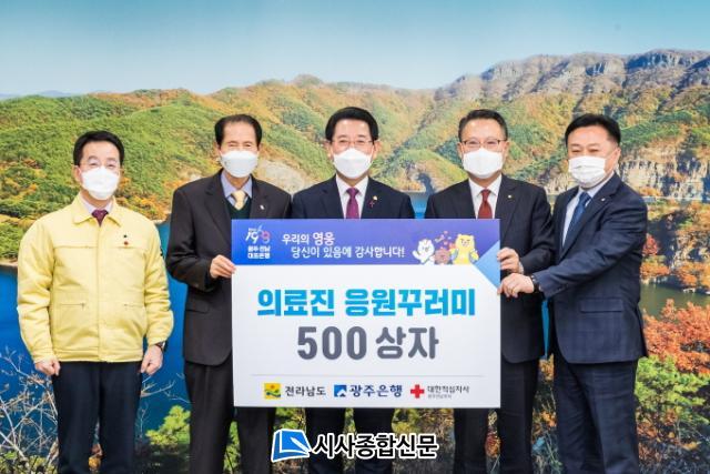 ±¤ÁÖ¡¤Àü³²Áö¿ªÀÇ ²ªÀÌÁö ¾Ê´Â Äڷγª È®»ê¼¼¿¡µµ ¡®Äڷγª19¡¯ Ä¡·á¿Í È®»ê ¹æÁö¸¦ À§ÇØ ÃÖÀü¼±¿¡¼ Èû¾²°í ÀÖ´Â ÀÇ·áÁø¿¡°Ô °¨»ç¿Í ÀÀ¿øÀÇ ¸Þ½ÃÁö¸¦ Àü´ÞÇϰíÀÚ ¼ÛÁ¾¿í ±¤ÁÖÀºÇàÀå°ú ÀÓÁ÷¿ø 40¿©¸íÀº ¡®ÀÀ¿ø²Ù·¯¹Ì¡¯ 500»óÀÚ¸¦ Á÷Á¢ Á¦ÀÛÇÏ´Â ºÀ»çȰµ¿À» ÀÚüÀûÀ¸·Î ÁøÇàÇß´Ù.