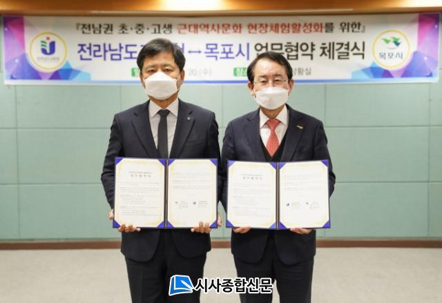 ±èÁ¾½Ä ¸ñÆ÷½ÃÀå°ú Àå¼®¿õ Àü¶ó³²µµ±³À°°¨Àº 20ÀÏ ¸ñÆ÷½Ãû »óȲ½Ç¿¡¼ Àü³²±Ç ÇлýµéÀÇ ±Ù´ë¿ª»ç¹®È ÇöÀåüÇè Ȱ¼ºÈ¸¦ À§ÇÑ ¾÷¹«Çù¾à(MOU)À» ü°áÇß´Ù.