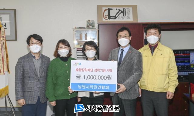[½Ã»çÁ¾ÇսŹ® = ³²Àç¿Á ±âÀÚ] ³²¿ø½ÃÇпø¿¬ÇÕȸ(ȸÀå ÃÖÀº¿µ)´Â Áö³ 21ÀÏ 6¹øÂ° ÃáÇâÀåÇÐÀç´ÜÀÌ»çÀå(ÀÌȯÁÖ ³²¿ø½ÃÀå)¿¡°Ô ÀåÇÐ±Ý 100¸¸¿øÀ» Àü´ÞÇß´Ù.
