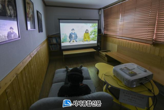 1Àüºñ µµ¼°üÀº °Ç¹° ³»¿¡ ÀÛÀº °ø°£¿¡ ºöÇÁ·ÎÁ§Æ®¿Í ½ºÅ©¸°, Çìµå¼Â µîÀ» °®Ãß¾î ¿µÈ¸¦ °¨»óÇÒ ¼ö ÀÖ´Â Àå¼Ò¸¦ ¸¶·ÃÇß´Ù. ¿µÈ°¨»ó½ÇÀº »çÀü¿¹¾àÀ» ÅëÇØ 1ÀÎ ¿¹¾àÀ» ¹ÞÀ¸¸ç ÇØ´ç À庴Àº µµ¼°ü ³»¿¡ ÀÖ´Â DVD¸¦ ´ëÃâÇÏ¿© ½ÃûÇÒ ¼ö ÀÖ´Ù.