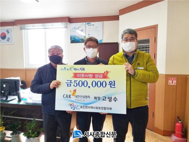 [½Ã»çÁ¾ÇսŹ® = ¿À½ÂÅà ±âÀÚ] ÀåÈﱺ ȸÁø¸é Áö¿ª»çȸº¸ÀåÇùÀÇü´Â Áö³ 26ÀÏ ´ëÇÑÀü¹®°Ç¼³Çùȸ Àü³²µµÈ¸(ȸÀå °í¼º¼ö)¿¡¼ ¾î·Á¿î ÀÌ¿ôÀ» µ½±â À§ÇÑ ¼º±Ý 50¸¸ ¿øÀ» ±âŹÇß´Ù°í ¹àÇû´Ù.