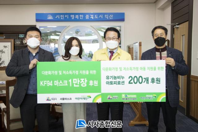 [½Ã»çÁ¾ÇսŹ® = ³²Àç¿Á ±âÀÚ] ÃÊ·Ï¿ì»ê¾î¸°ÀÌÀç´Ü ÀüºÏº»ºÎ(º»ºÎÀå ¹®Á¤ÈÆ)¿Í ÀÍ»êÈÄ¿øÈ¸(ÈÄ¿øÈ¸Àå À¯±â´Þ)´Â ¼¿ï¸¶½ºÅ©(´ëÇ¥ Á¤±ÝÀÚ), ¿¡ÀÌÇ÷¯½º ¾Æ·Î¸¶(´ëÇ¥ ÇãÁøÈñ)¿Í ÇÔ²² Áö³ 8ÀÏ ÀÍ»ê½ÃûÀ» ¹æ¹®ÇØ KF94 ¸¶½ºÅ© 1¸¸Àå°ú ¾Æµ¿¿ë ¾ÆÅäÇÇ ·Î¼Ç 100°³, À¯±â³ó ģȯ°æ °Åǰºñ´© 100°³ µî ÃÑ 850¸¸¿ø »ó´çÀÇ ¹°Ç°À» ÈÄ¿øÇß´Ù.
