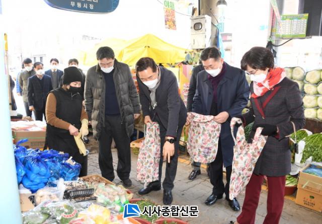 ±¤ÁÖ½ÃÀÇȸ ±è¿ëÁý ÀÇÀå°ú Á¶¼®È£?Á¤¼ø¾Ö ºÎÀÇÀåÀ» ºñ·ÔÇÑ »ç¹«Ã³ Á÷¿øµéÀº 9ÀÏ ³²±¸ ÁÖ¿ùµ¿¿¡ À§Ä¡ÇÑ ¹«µî½ÃÀåÀ» ã¾Æ ¼³¸ÂÀÌ »ýÇÊǰÀ» ±¸ÀÔÇÏ°í ½ÃÀå »óÀεéÀÇ ¾Ö·Î»çÇ×À» ûÃëÇß´Ù.