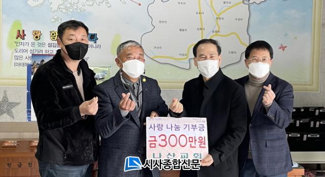 [½Ã»çÁ¾ÇսŹ® = Àåö ±âÀÚ] ÇÔÆò±º ³ª»ê¸é¿¡ ¼ÒÀçÇÑ ³ª»ê±³È¸(±èÅÂ±Õ ¸ñ»ç)°¡ Áö³ 17ÀÏ Áö¿ªÀÇ Ãë¾à°èÃþÀ» À§ÇØ ½á´Þ¶ó¸ç ³ª»ê¸éÁö¿ª»çȸº¸ÀåÇùÀÇü¿¡ ÈÄ¿ø±Ý 300¸¸¿øÀ» ±âŹÇß´Ù.
