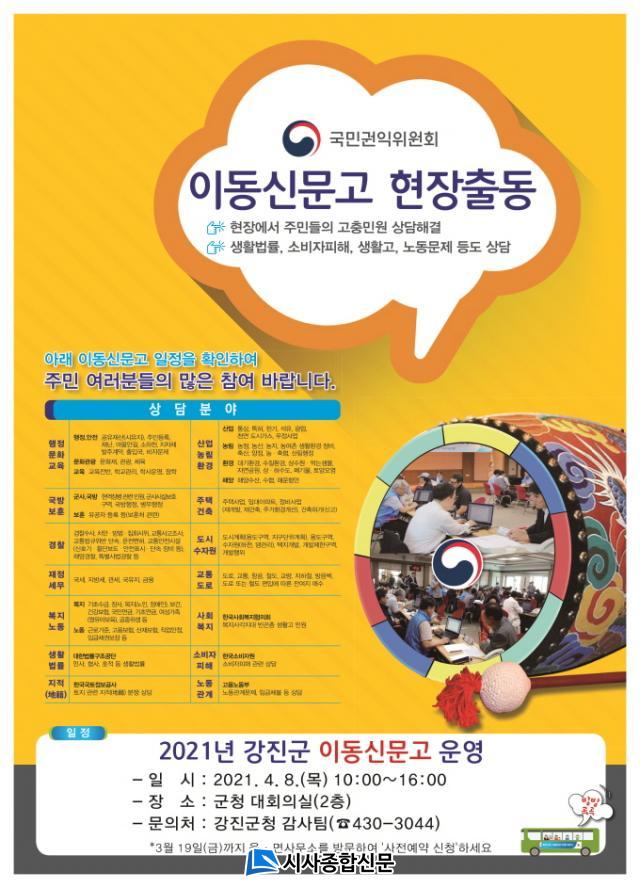 | °Áø±º, ±¹¹Î±ÇÀÍÀ§¿øÈ¸ ÁÖ°ü À̵¿½Å¹®°í ¿î¿µ ÁֹΠ°íÃæ¹Î¿ø »ó´ã ó¸® 3¿ù 19ÀϱîÁö ½Åû Á¢¼ö