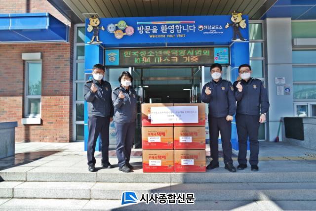 [½Ã»çÁ¾ÇսŹ® = ¿À½ÂÅà ±âÀÚ] ÇØ³²±³µµ¼Ò(¼ÒÀå Á¶°ü¼º)´Â Çѱ¹Ã»¼Ò³âÆø·Â¹æÁöÇùȸ(ÇùȸÀå À̱ݼ±)·ÎºÎÅÍ Äڷγª19 È®»ê ¹æÁö¸¦ À§ÇÑ KF94 ¸¶½ºÅ© 3,000ÀåÀ» ±âºÎ¹Þ¾Ò´Ù.