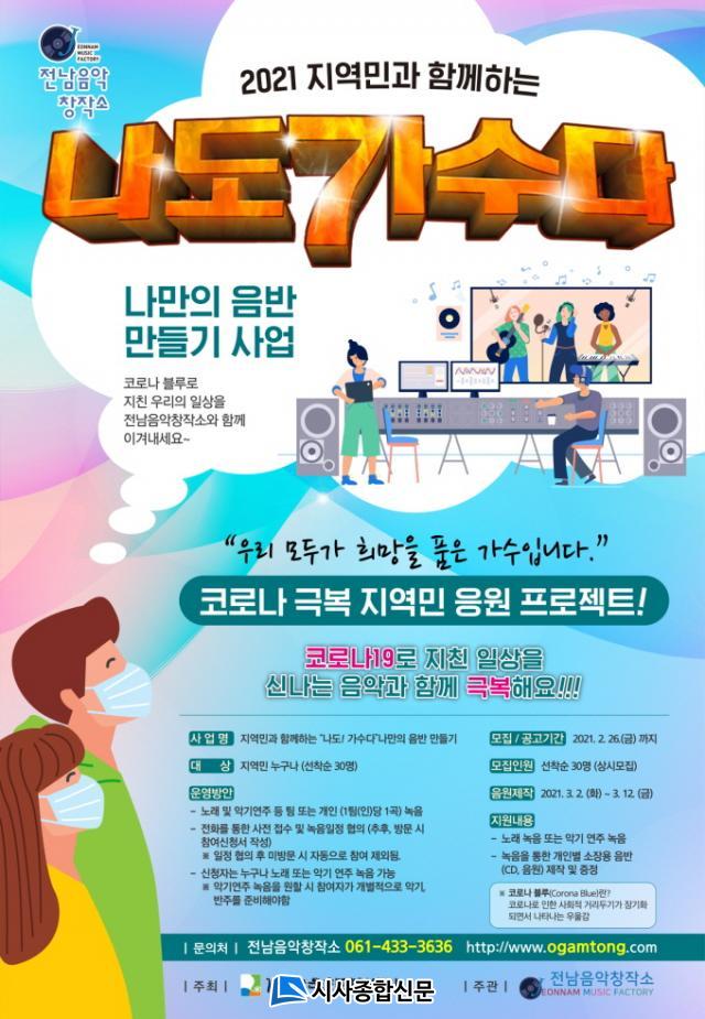 '³ªµµ °¡¼ö´Ù' À½¹ÝÁ¦ÀÛ »ç¾÷Àº Àü³²À½¾ÇâÀÛ¼ÒÀÇ ³ìÀ½½Ã¼³À» ÅëÇØ Äڷγª·Î ÁöÄ£ Áö¿ª¹ÎÀÇ ¸¶À½À» À½¾ÇÀ̶ó´Â ¸Å°³Ã¼¸¦ ÅëÇØ ÀÚ½ÅÀÇ °¨Á¤À» Àû±ØÀûÀ¸·Î Ç¥ÇöÇÔÀ¸·Î½á¡®Äڷγª ºí·ç¡¯´Â ³¯¸®°í Èï ³ÑÄ¡´Â »õÇØ¸¦ ¿ÀÚ´Â ÃëÁö·Î ±âȹµÆ´Ù.