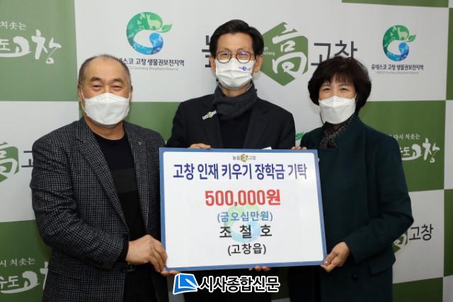 Áö³ 19ÀÏ °íâÀ¾ÀÇ Á¶Ã¶È£¾¾°¡ °íⱺÀåÇÐÀç´Ü¿¡ ÀåÇбâ±ÝÀ¸·Î 50¸¸¿øÀ» ±âŹÇß´Ù. Áö³ÇØ¿¡ ÀÌ¾î ¿ÃÇØµµ ÀåÇбâ±ÝÀ» ±âŹÇÑ Á¶Ã¶È£¾¾´Â ¡°¿ì¸® Áö¿ª ¹ßÀüÀ» À̲ø¾î³ª°¥ ¾ÆÀ̵éÀÇ ²ÞÀ» À§ÇÑ ¼Ò¹ÚÇÑ ¾¾¾ÑÀÌ µÇ¾úÀ¸¸é ÁÁ°Ú´Ù¡±°í ¸»Çß´Ù.