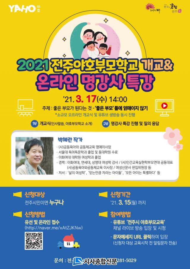 ÀüÁֽô ¿À´Â 17ÀÏ ¿ÀÈÄ 2½Ã Çѱ¹ÀüÅë¹®ÈÀü´ç¿¡¼ 2021 ÀüÁÖ¾ßÈ£ºÎ¸ðÇб³ °³±³ ±â³ä ¿Â¶óÀÎ ¸í°»ç Ư°À» ÇÑ´Ù.