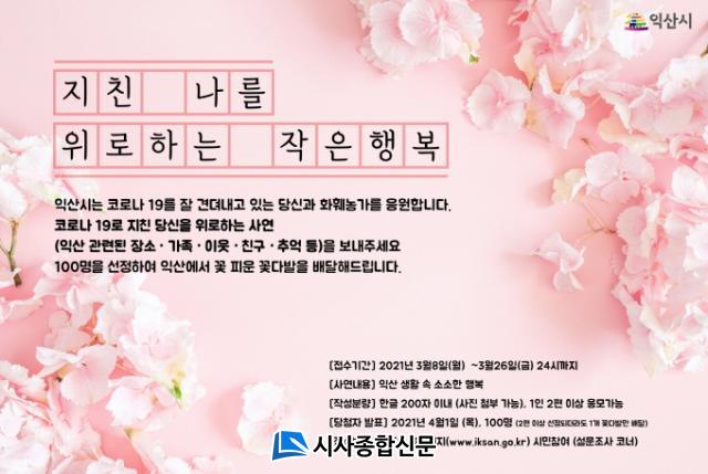 ÀÍ»ê½Ã´Â Äڷγª19¸¦ Àß À̰ܳ»°í ÀÖ´Â ½Ã¹Î°ú ÈÈѳ󰡸¦ ÀÀ¿øÇϱâ À§ÇØ¡®ÁöÄ£ ³ª¸¦ À§·ÎÇÏ´Â ÀÛÀº Çູ¡¯À» ÁÖÁ¦·Î ÇÑ À̺¥Æ®¸¦ ¸¶·ÃÇϰí È«º¸¿¡ ³ª¼¹´Ù.