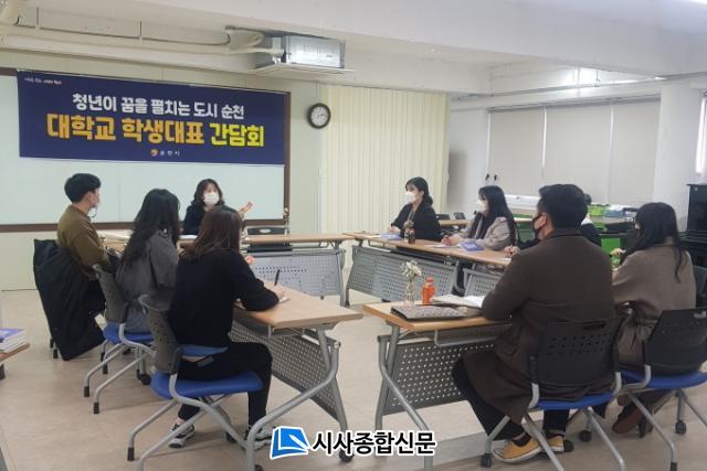 °£´ãȸ¿¡´Â ¼øÃµ´ë, Á¦ÀÏ´ë, û¾Ï´ë ÇлýȸÀå µî 8¸íÀÌ Âü¼®ÇÏ¿´À¸¸ç, 3¿ù º»°ÝÀûÀÎ ´ëÇб³ °³°À» ¸Â¾Æ ´ëÇÐ(¿ø)»ý ÀüÀÔÀå·Á±Ý Áö¿ø È«º¸ ¹× ´ëÇа¡ µ¿Çâ ÆÄ¾Ç, û³â ½ÃÃ¥¿¡ ´ëÇÑ Çлý ´ëÇ¥µéÀÇ ÀǰßûÃë µî û³â ´ç»çÀÚµé ÇöÀåÀÇ ¸ñ¼Ò¸®¸¦ µè´Â ¼øÀ¸·Î ÁøÇàµÇ¾ú´Ù.