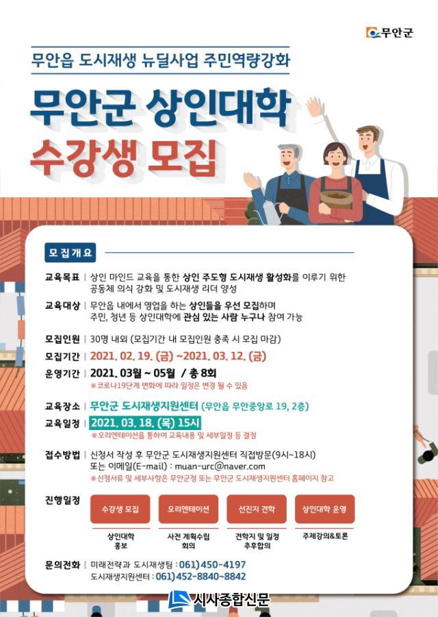 ½ÅûÀº ÁÖ¹Î, û³â µî »óÀδëÇп¡ °ü½ÉÀÖ´Â »ç¶÷ÀÌ¸é ´©±¸³ª °¡´ÉÇϳª ¹«¾ÈÀ¾ ³»¿¡¼ ¿µ¾÷À» ÇÏ´Â »óÀεéÀ» ¿ì¼± ¸ðÁýÇÑ´Ù. ½ÅûÀ» ¿øÇÏ´Â °æ¿ì ½Åû¼¿Í °³ÀÎÁ¤º¸µ¿ÀǼ¸¦ ÀÛ¼ºÇÏ¿© ¹«¾È±º µµ½ÃÀç»ýÁö¿ø¼¾ÅÍ¿¡ Á÷Á¢ ¹æ¹®Çϰųª À̸ÞÀÏ·Î Á¦ÃâÇÏ¸é µÈ´Ù.