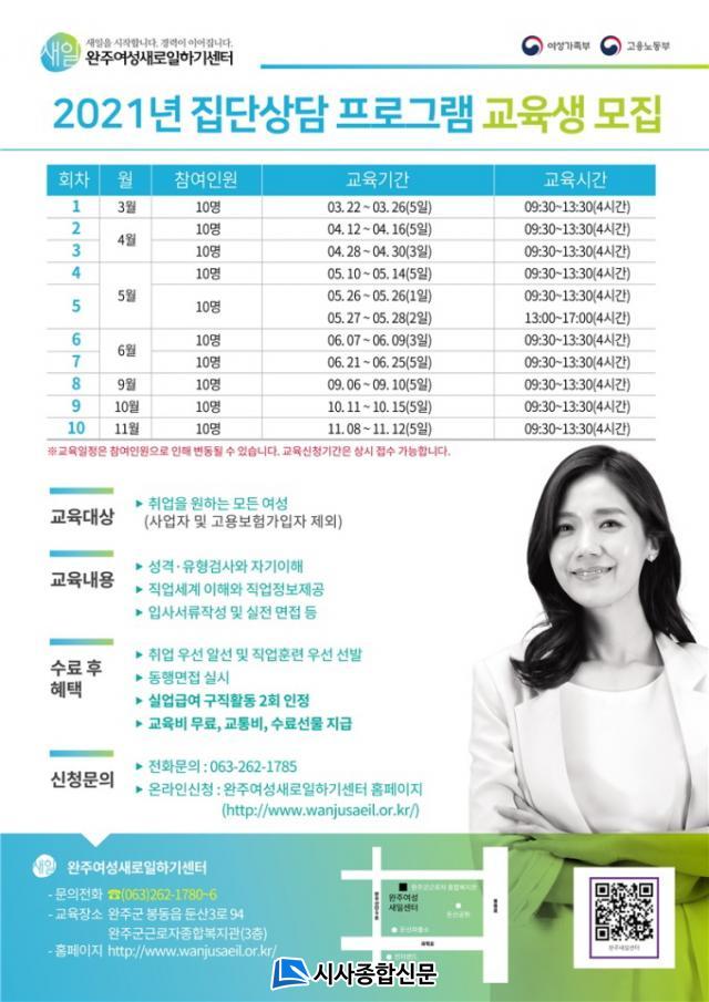 11ÀÏ ¿ÏÁÖ±ºÀÏÀÚ¸®Áö¿ø¼¾ÅÍ ¿©¼º»õÀÏÆÀÀº Ãë¾÷À» ¿øÇÏ´Â ¸ðµç ¿©¼ºÀ» ´ë»óÀ¸·Î Á¦12Â÷ Ãë¾÷ Áý´Ü »ó´ã ÇÁ·Î±×·¥À» ¿î¿µÇÑ´Ù°í ¹àÇû´Ù.