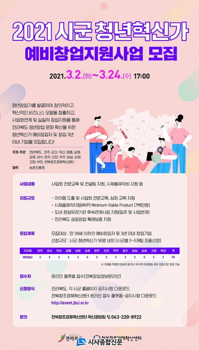 »ç¾÷¿¡ Âü¿©ÇϰíÀÚ ÇÏ´Â ¸¸ 19¼¼ÀÌ»ó 39¼¼ÀÌÇÏ Ã»³âÇõ½Å°¡´Â ¿À´Â 24ÀϱîÁö ¼øÃ¢±º ȨÆäÀÌÁö °ø°í¹®À» Âü°í, ½Åû¼¸¦ ÀÛ¼ºÇØ ¿Â¶óÀÎ Ç÷§Æû( http://event.jbci.or.kr/)¿¡ Á¦ÃâÇÏ¸é µÈ´Ù.