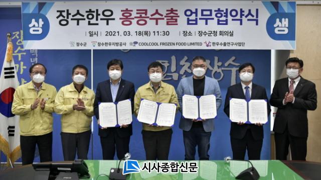 Àå¼ö±ºÃ»¿¡¼ ÁøÇàµÈ Çù¾à½Ä¿¡´Â À念¼ö ±º¼ö¿Í ±èÇöö ³ó¾÷±â¼ú¼¾ÅÍ ¼ÒÀå, ÃÖÁø±¸ Àå¼öÇÑ¿ìÁö¹æ°ø»ç »çÀå, Àå¼ö±º ³óÃà»êÀ¯Åë°úÀå ¹× È«Äá ¹ÙÀ̾î, ÇÑ¿ì¼öÃ⿬±¸»ç¾÷´Ü, Çѱ¹¿¬±¸Àç´Ü Á¶¿µÃ¶ Àü¹®À§¿ø µîÀÌ Âü¼®Çß´Ù.