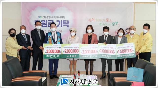 À̹ø ±âʽÄÀº ±¤¾ç¸¸¶óÀ̿½ºÅ¬·´ÀÌ 3¹é¸¸ ¿ø, Á¤¾Ö°æ ½ÃÀÎÀÌ 2¹é¸¸ ¿ø, Çã¾Ö°æ ÇÑ¿ÃÀ¯¾Æ½ºÄð¾î¸°ÀÌÁý ¿øÀåÀÌ 2¹é¸¸ ¿ø, Çѱ¹»ýȰ°³¼±±¤¾ç½Ã¿¬ÇÕȸ¿¡¼ 1¹é 5½Ê¸¸ ¿ø, ¿Á·æ¸éû³âȸ¿¡¼ 1¹é¸¸ ¿øÀÇ ¼ÒÁßÇÑ ÈÄ¿ø±ÝÀ» Àü´ÞÇϸç ÈÆÈÆÇÑ ¸¶À½À» ÀüÇß´Ù.