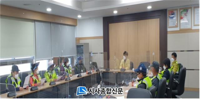 [½Ã»çÁ¾ÇսŹ® = ³²Àç¿Á ±âÀÚ] ÀӽDZºÀÌ Áö³ 25ÀÏ ±ºÃ» ȸÀǽǿ¡¼ ÇÏõ ¾²·¹±â Á¤È»ç¾÷ Âü¿©ÀÚ 13¸íÀ» ´ë»óÀ¸·Î Äڷγª19 ¹æ¿ª¼öÄ¢°ú Á¤È»ç¾÷ Ȱµ¿ ½Ã ¹ß»ýÇÒ ¼ö ÀÖ´Â »ç°í À¯Çüº° ¾ÈÀü±³À°À» ½Ç½ÃÇß´Ù.