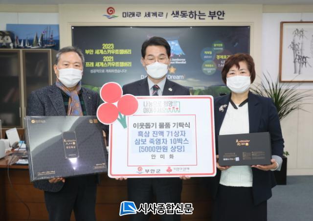 [½Ã»çÁ¾ÇսŹ® = ³²Àç¿Á ±âÀÚ] ºÎ¾È¿¡ °ÅÁÖÇÏ´Â ¾È¹ÌÈ ¾¾´Â Áö³ 25ÀÏ ºÎ¾È±ºÃ»À» ¹æ¹®ÇÏ¿© Èæ»ï Áø¾×(½ºÆ½Çü) 71»óÀÚ¿Í »ïº¸ Á׿°Â÷ 100»óÀÚ µî(5,000¸¸¿ø »ó´ç)À» ¾î·Á¿î ÀÌ¿ôµé¿¡°Ô Àü´ÞÇØ ´Þ¶ó¸ç ºÎ¾È±º¿¡ ±âŹÇÏ¿´´Ù.