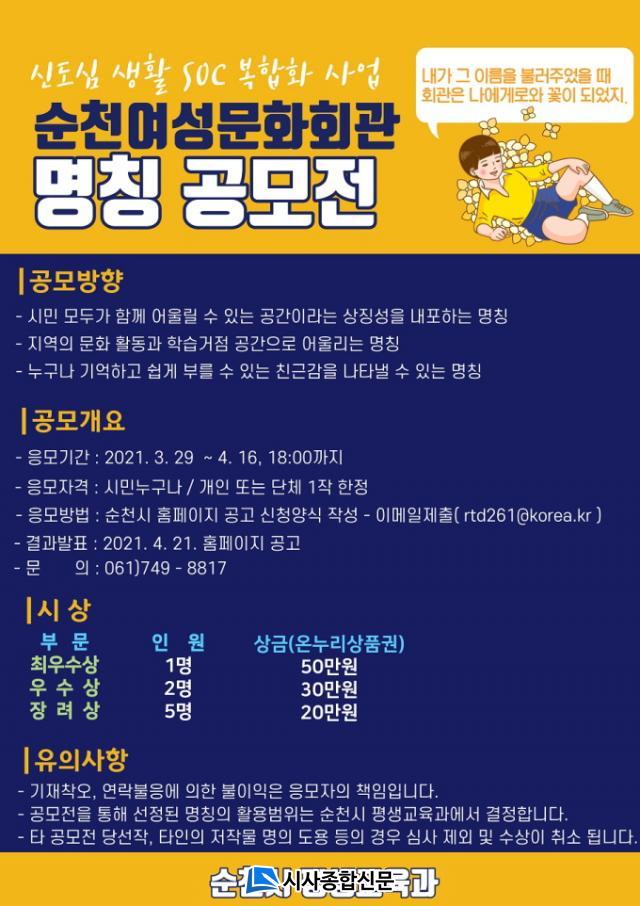 ÇÑÆí, ¼øÃµ½Ã´Â 2021³âµµ »ýȰSOC º¹ÇÕÈ »ç¾÷¿¡ ¼±Á¤µÇ¾î 14¾ï¿øÀ» ÅõÀÔÇÏ¿© ¿©¼º¹®Èȸ°ü¿¡ ÀÛÀºµµ¼°ü, »ýȰ¹®È¼¾ÅÍ(´Ù¸ñÀûȦ, ÁÖ¹ÎÀÚÀ²°ø°£, Ư¼ºÈ½Ã¼³ µî)¸¦ Á¶¼ºÇÏ¿© 2022³â 1¿ù Àç°³°üÇÒ ¿¹Á¤ÀÌ´Ù.