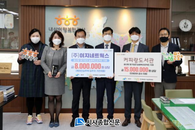 ±¤ÁÖ ±¤»ê±¸¿¡ µû¸£¸é Ä¿ÇǶûµµ¼°ü°ú ¢ßÀÌÁö³×Æ®¿÷½º°¡ °¢°¢ 1500¸¸ ¿ø°ú 800¸¸ ¿øÀ» Áö³ 29ÀÏ Åõ°Ô´õ±¤»ê³ª´®¹®ÈÀç´Ü¿¡ ±âŹÇß´Ù. µÎ ȸ»çÀÇ ±âʱÝÀº ¿µ±¸ÀÓ´ë ´ÃÇູ ÇÁ·ÎÁ§Æ®¿¡¼ Á¦°øÇÑ »ç¾÷À» ±Ý¾×À¸·Î ȯ»êÇÑ °ÍÀÌ´Ù.