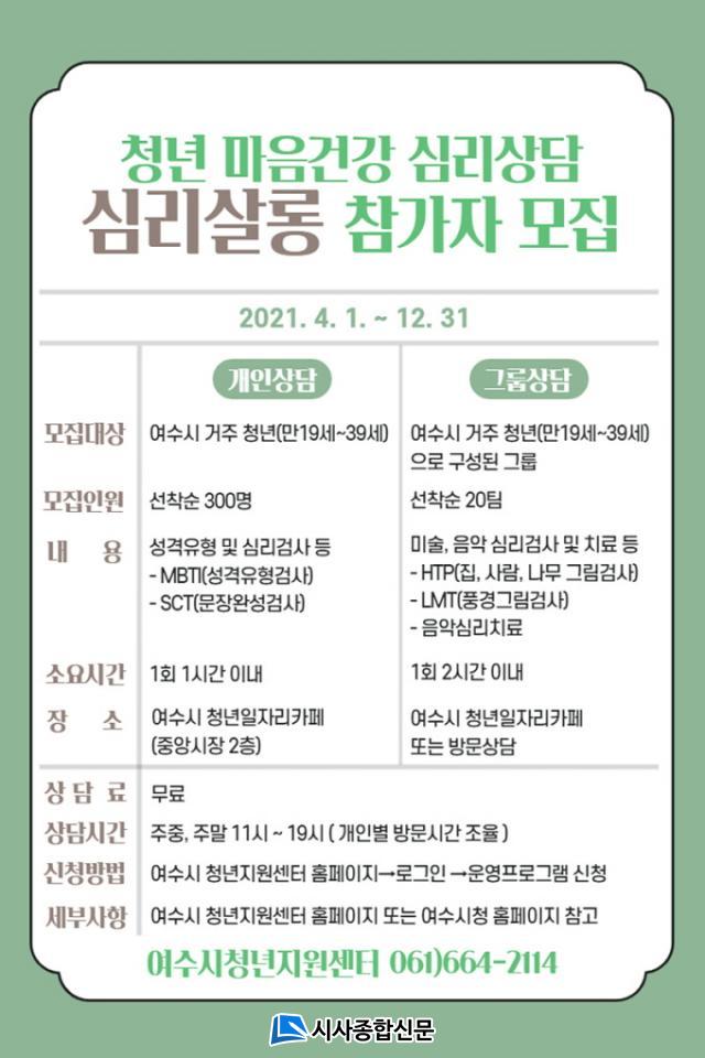 ÇÑÆí, ¿©¼ö½Ã´Â Áö³ 2¿ù ¼±Âø¼ø 100¸íÀ» ´ë»óÀ¸·Î ½É¸®»ì·Õ Âü¿©ÀÚ¸¦ ¸ðÁýÇßÀ¸³ª, Äڷγª ºí·ç µîÀ¸·Î µµ¿òÀÌ ÇÊ¿äÇÑ Ã»³âµéÀÇ ½É¸®Àû ¾ÈÁ¤À» À§ÇØ °³Àλó´ã ÀοøÀ» 300¸íÀ¸·Î ´ëÆø ´Ã¸®°í ¹Ì¼ú‧À½¾Ç Ä¡·á¸¦ Ȱ¿ëÇÑ ±×·ì»ó´ãÀ» »õ·Ó°Ô µµÀÔÇß´Ù.