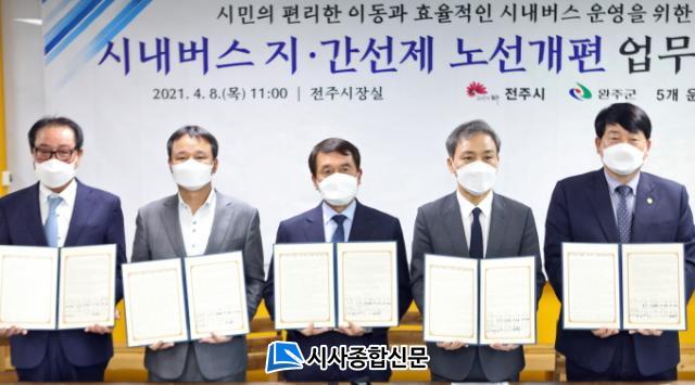 ±è½Â¼ö ÀüÁÖ½ÃÀå°ú °µ¿È ÀüÁÖ½ÃÀÇȸ ÀÇÀå, ¹Ú¼ºÀÏ ¿ÏÁÖ±º¼ö, ±èÀçõ ¿ÏÁÖ±ºÀÇȸ ÀÇÀå, ±èÁøÅ ÀüÁֽó»¹ö½º°øµ¿°ü¸®À§¿øÈ¸ ÀÌ»çÀåÀº 8ÀÏ ÀüÁÖ½ÃÀå½Ç¿¡¼ ¡®ÀüÁÖ¡¤¿ÏÁÖ ½Ã³»¹ö½º Áö°£¼±Á¦ ³ë¼±°³Æí ½ÃÇà ¾÷¹«Çù¾à¡¯À» ü°áÇß´Ù.