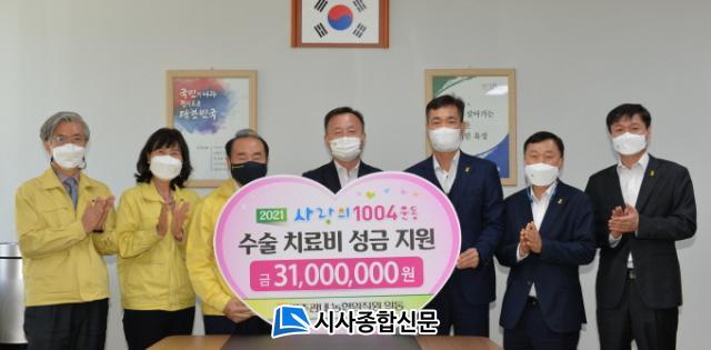 ±¤Áֽñ³À°Ã»ÀÌ 15ÀÏ ³óÇùÁß¾Óȸ ±¤ÁÖÁö¿ªº»ºÎ·ÎºÎÅÍ »ç¶ûÀÇ 1004¿îµ¿ÀÇ ÀÏȯÀ¸·Î Çлý Ä¡·áºñ Áö¿ø±Ý 1,900¸¸ ¿øÀ» Àü´Þ¹Þ¾Ò´Ù.