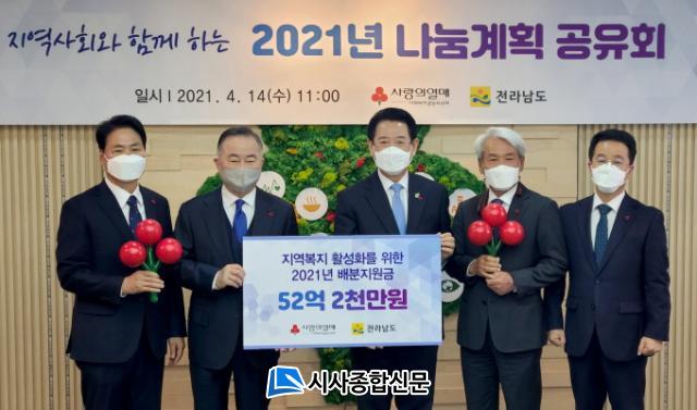 ±è Áö»ç´Â Àü´Þ½Ä¿¡¼ ¡°Àü±¹¿¡¼ º¹Áö ¼ö¿ä°¡ »ó´ëÀûÀ¸·Î ¸¹Àº Àü³²ÀÇ º¹Áö»ç¾÷¿¡ Å« ÈûÀ» º¸ÅÂÁà °¨»çÇÏ´Ù¡±¸ç ¡°¿ÃÇØ ¹èºÐµÈ 52¾ï ¿øÀº µµ¿òÀÇ ¼Õ±æÀÌ ÇÊ¿äÇÑ µµ¹Î¿¡°Ô Å« Èñ¸ÁÀ» ÁÖ´Â »ç¶ûÀÇ ¼±¹°ÀÌ µÉ °Í¡±À̶ó°í ¸»Çß´Ù.