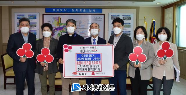 [½Ã»çÁ¾ÇսŹ® = ¿À½ÂÅà ±âÀÚ] ¢ß¿Ã¹éÄÚ¸®¾Æ(´ëÇ¥ ÃßÈñ¿ø)´Â 4¿ù 20ÀÏ ¾î¸£½ÅµéÀÇ °Ç°À» À§ÇØ ±èÁ¦½Ã(½ÃÀå ¹ÚÁعè)¸¦ ¹æ¹®ÇÏ¿© È£¶ûÀÌ ÈÅ©¸² 5,000°³(7,500¸¸¿ø»ó´ç)À» ÁöÁ¤ ±âŹÇÏ¿´´Ù.
