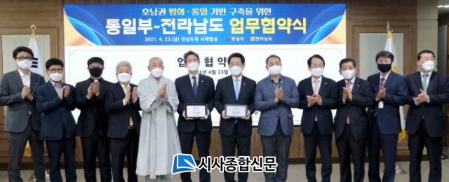 Àü±¹ ÃÖÃʷΠü°áµÈ À̳¯ Çù¾à½Ä¿¡´Â ±è¿µ·Ï Àü³²µµÁö»ç¿Í ÀÌÀοµ ÅëÀϺΠÀå°ü, ±è¿øÀÌ ±¹È¸ÀÇ¿ø, ±èÁ¾½Ä ¸ñÆ÷½ÃÀå, ³²ºÏ±³·ù¼¾ÅÍ ÀÌ»çÀåÀÎ ¸ù»ê ½º´Ô µî ÅëÀϺΡ¤ÁöÀÚü¡¤¹Î°£´Üü °ü°èÀÚ°¡ Âü¼®Çß´Ù.